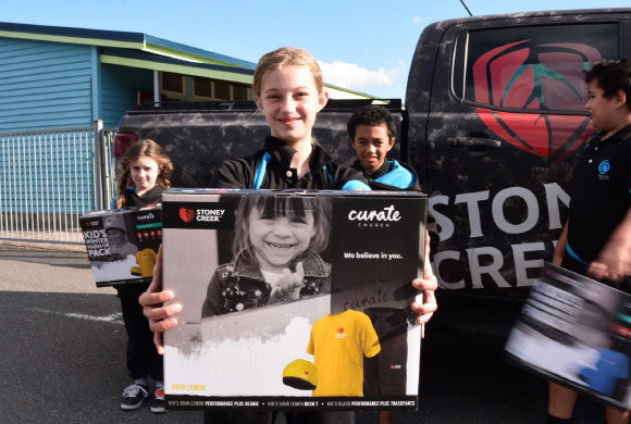 Our Backyard Trust is proud to be supporting children in need with warm clothing packs. This year will take us to over 45,750 kids clothed, and we are well on our way to reaching our target of clothing over 100,000 kids that live below the poverty line. We can’t do it all ourselves, and have been grateful to received support from over 50 businesses and community organisations so far. We encourage all those who are able to help out in any way to get involved and support this great initiative. The Kids Winter Warm Up Packs we donate are the perfect fleece pack for kids during the winter. Each pack comes with a Stoney Creek Kid’s Fleece Beanie, a Bush Tee and a pair of Trackpants. These garments are worn as insulation layers and are perfect for under a rain jacket on cold, wet days.