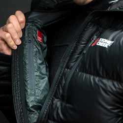 Purpose: Built to deliver maximum core warmth during long static periods in brutal alpine conditions while staying lightweight and compact.